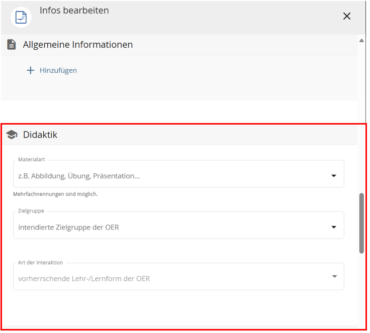 In diesem haben Sie nun die Möglichkeit im Abschnitt „Didaktik“ die folgenden drei didaktische Metadaten zu bestimmen: